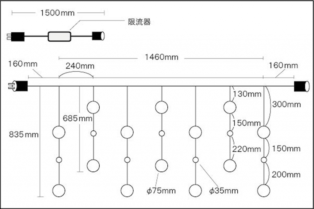 | 商品名 | LEDボールアイシクルライト、RGB、LED21球、1.5mx0.8m、連結可 |