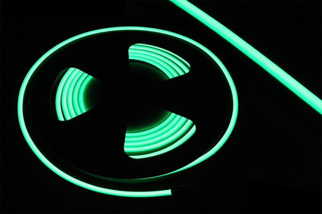 従来のロープライトやテープライトでは LED球の1つ1つが光の粒となって見えますが、ネオンフレックスなら粒状感の無い連続的な光の線を描けます。
