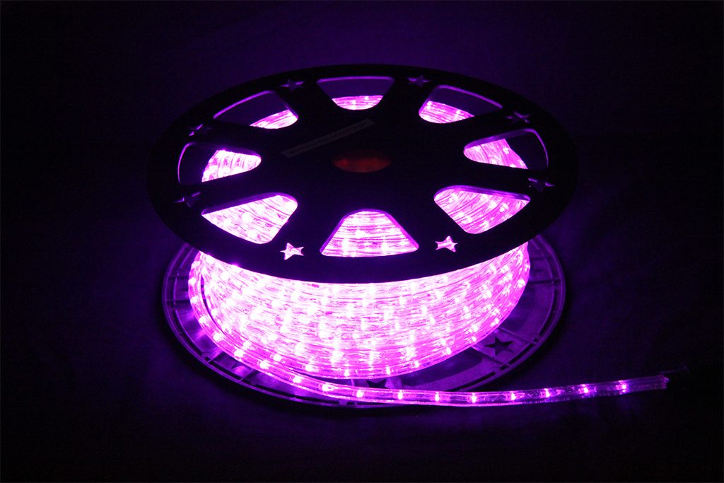 LEDロープライト(チューブライト) 10mm2芯 カット単位2m 【パワーコード・エンドキャップ付】 パープル(紫)