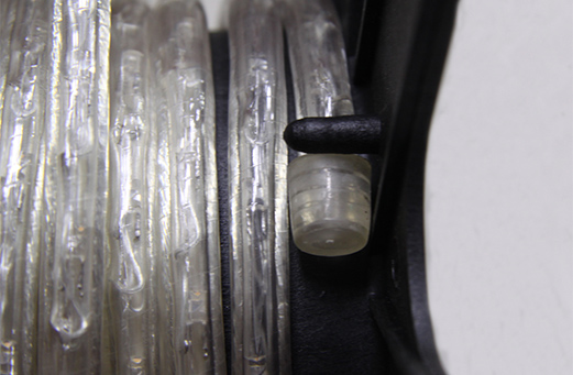 ※ エンドキャップはロールの終端にかぶせられていますが、カットしてご使用になる場合を考慮して固定はされていません。設置の際は必ずロープ終端に接着剤で固定してください。