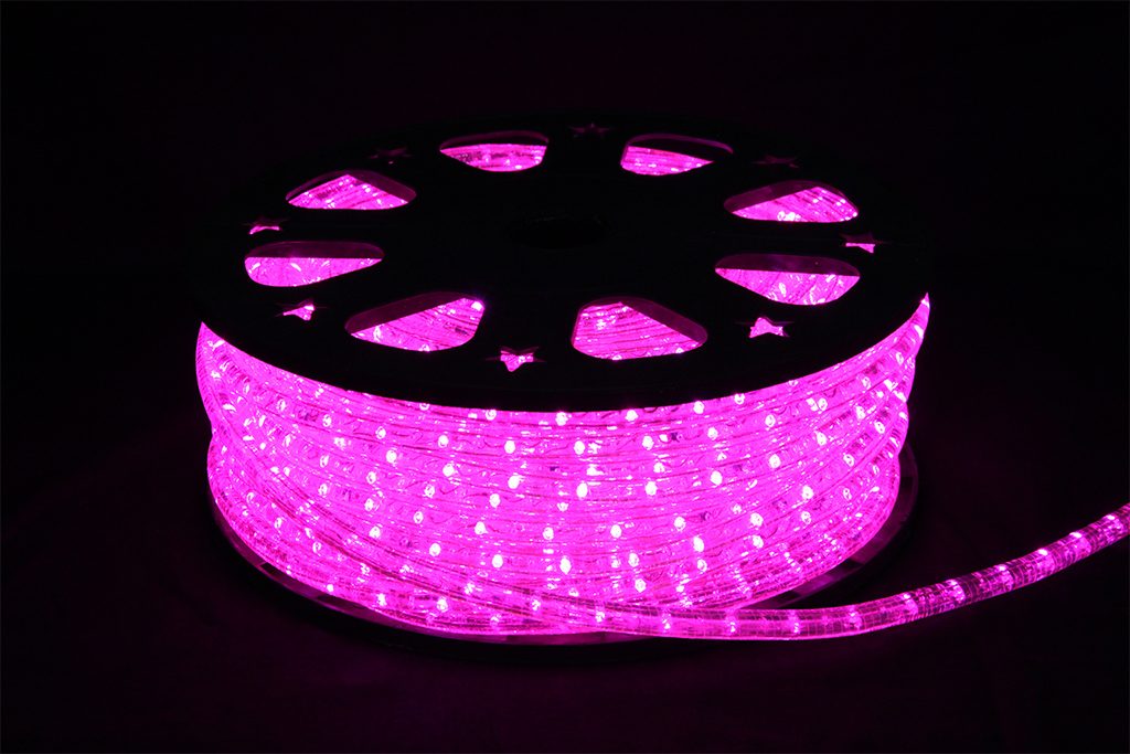 LEDロープライト(チューブライト) 13mm2芯 カット単位2m 【パワーコード・エンドキャップ付】 ピンク