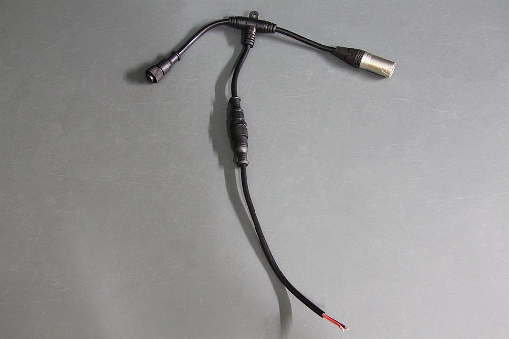 DMX対応ピクセルボールにDMX512信号・DC24V電源を供給するためのT型ケーブルです。
