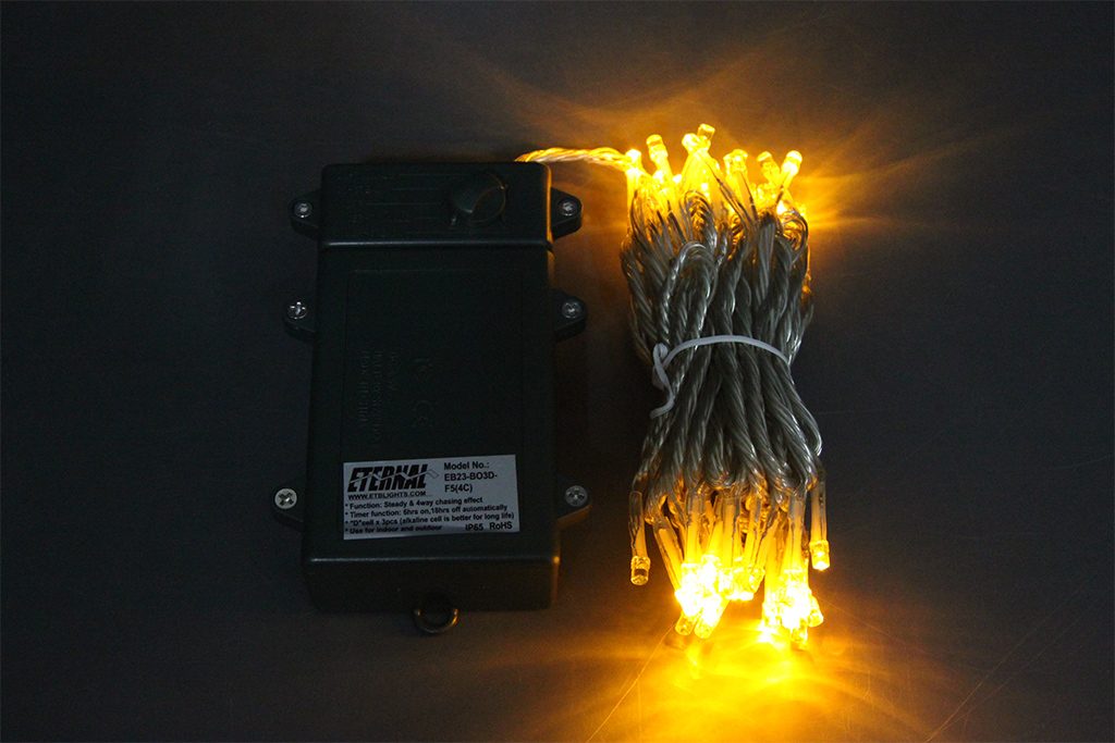 単1電池3本で2週間以上使用できます(タイマー機能を使用した場合)。エネループなどの電池も使えますからエコなイルミネーションが可能です。