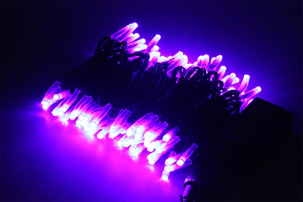 【プロ仕様 / コントローラ点滅】 LEDストリング(ストレート)ライト【黒コード】 2回路点滅タイプ パープル(紫)