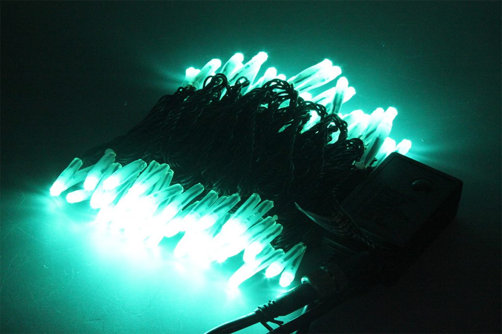 【プロ仕様 / コントローラ点滅】 LEDストリング(ストレート)ライト【黒コード】 2回路点滅タイプ アクアグリーン(薄緑)