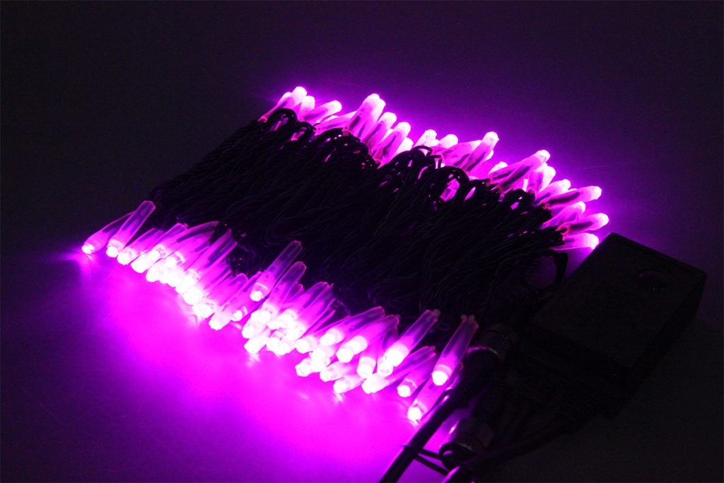 【プロ仕様 / コントローラ点滅】 LEDストリング(ストレート)ライト【黒コード】 2回路点滅タイプ ピンク