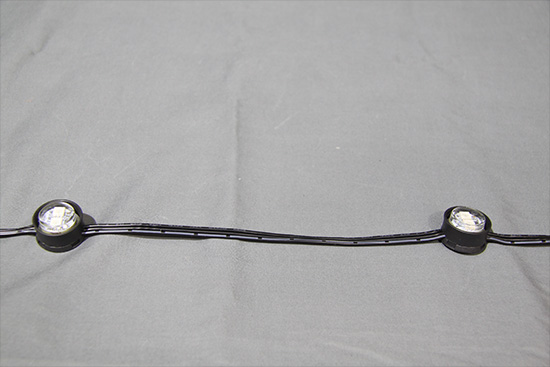 ピクセル間のピッチは20cm、ピクセル間のコードをカットして1ピクセル単位で使用することも可能です。