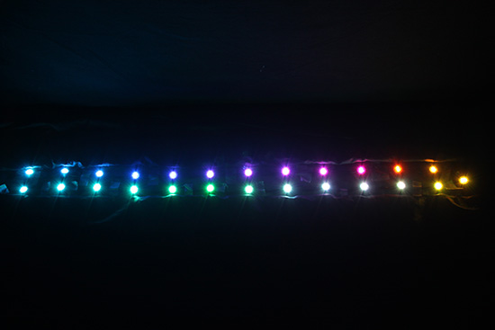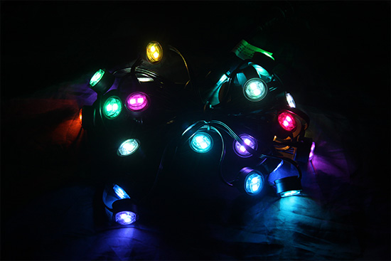 | サイズ | コード全長:約5m ピクセル間のピッチ:20cm ピクセルモジュール:直径18.5mm 高さ12mm キャップ用ベースを含むピクセルサイズ:直径24.5mm 高さ14.5mm |