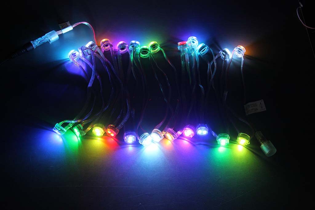 ピクセル間のピッチは20cm、ピクセル間のコードをカットして1ピクセル単位で使用することも可能です。