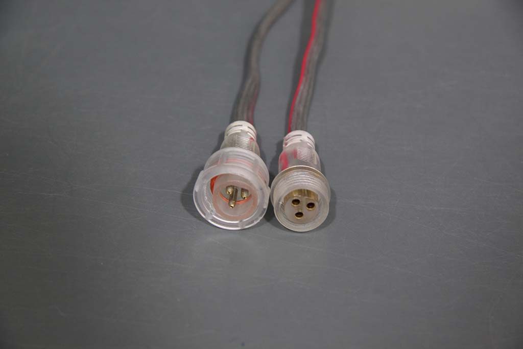 DMX-SPIデコーダ/SPIコントローラとの接続には、電線の先バラ加工が必要になります。 本体を加工したくない場合は、灯体間延長ケーブル をお求めの上、延長ケーブルを加工してください。 配線方法・線の割り当てについては配線方法とピンアサインの資料をご参照ください。本商品(R2)と ピクセルストリングR1(従来品)はコネクタの形状が異なるためそのままでは連結できません。R1仕様のストリング・ケーブルと本商品を連結する場合は以下の変換ケーブルをお求めください。 R1の後にR2を接続する場合・・・R1オス-R2メス変換ケーブル R2の後にR1を接続する場合・・・R2オス-R1メス変換ケーブルコード色はクリアですが、側面片側に赤いラインが入っています。 |