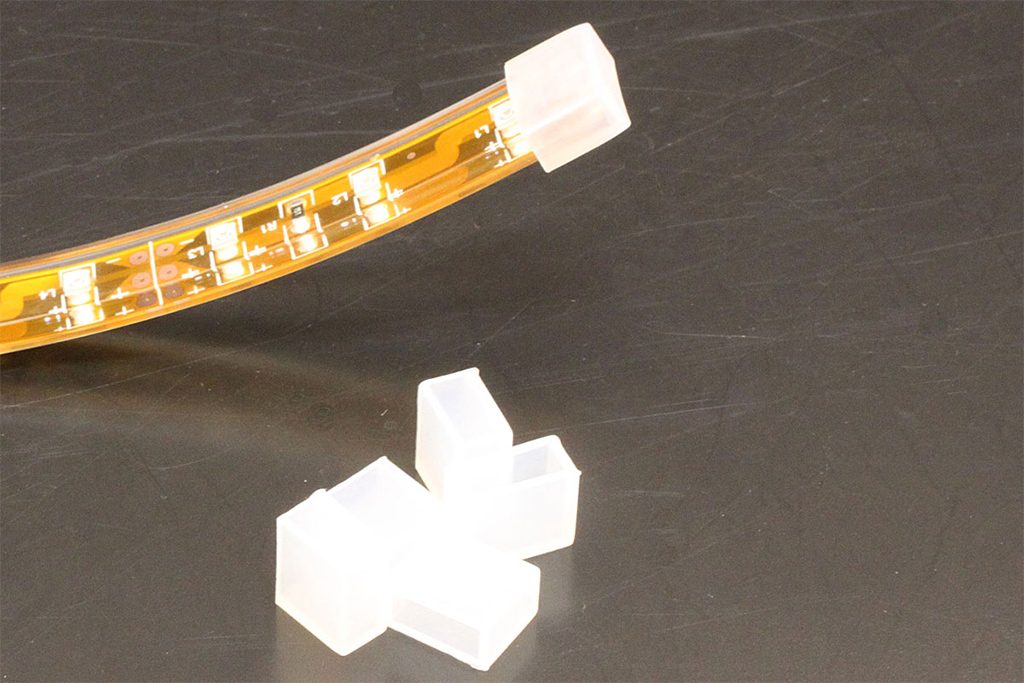 切断したLEDテープライトの末端に絶縁、防水のために被せるキャップです。