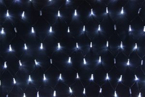 話題のLED(発光ダイオード)を使用したネット型(網状)のイルミネーションです。電球の寿命が長く、低消費電力でほとんど熱をもたないという特徴で、屋外で使用可能です。