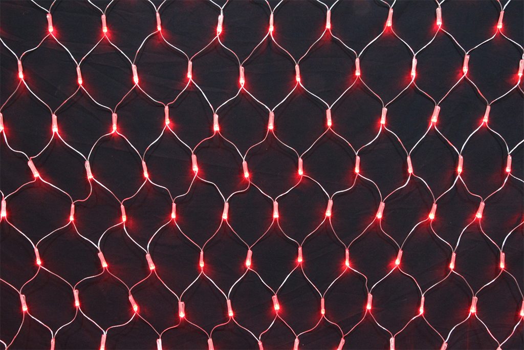 | 商品名 | LEDイルミネーション、ネット(網状)、常点、レギュラー仕様(ツエナー無)、180球、シルバーコード、レッド |
