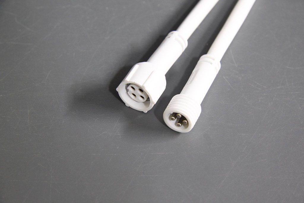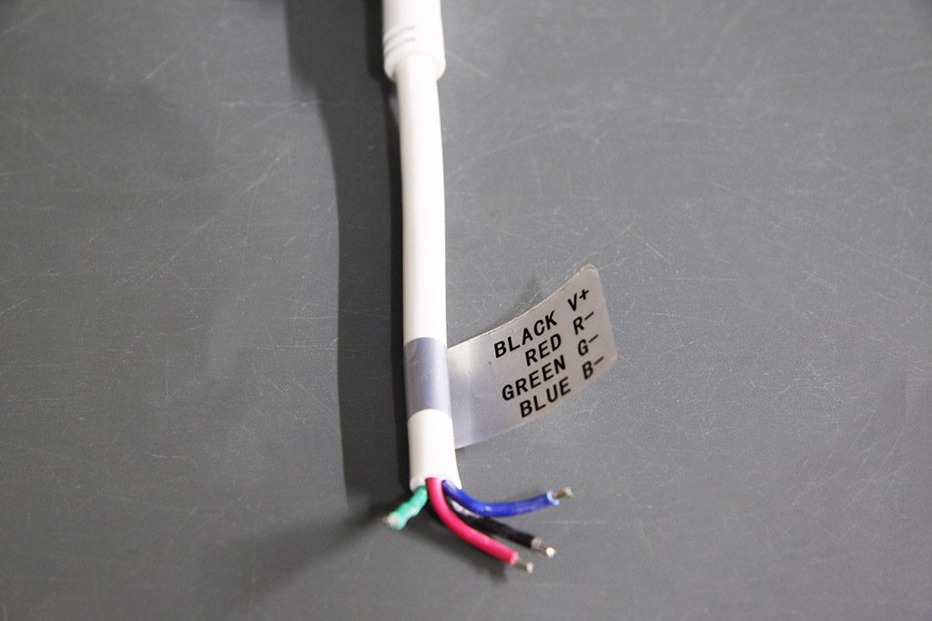 リード線の先端(コントローラとの接続部)は独自形状の防滴型4芯コネクタになりますが、先バラ4芯線(R,G,B,V+)のアダプタコードが付属しています。