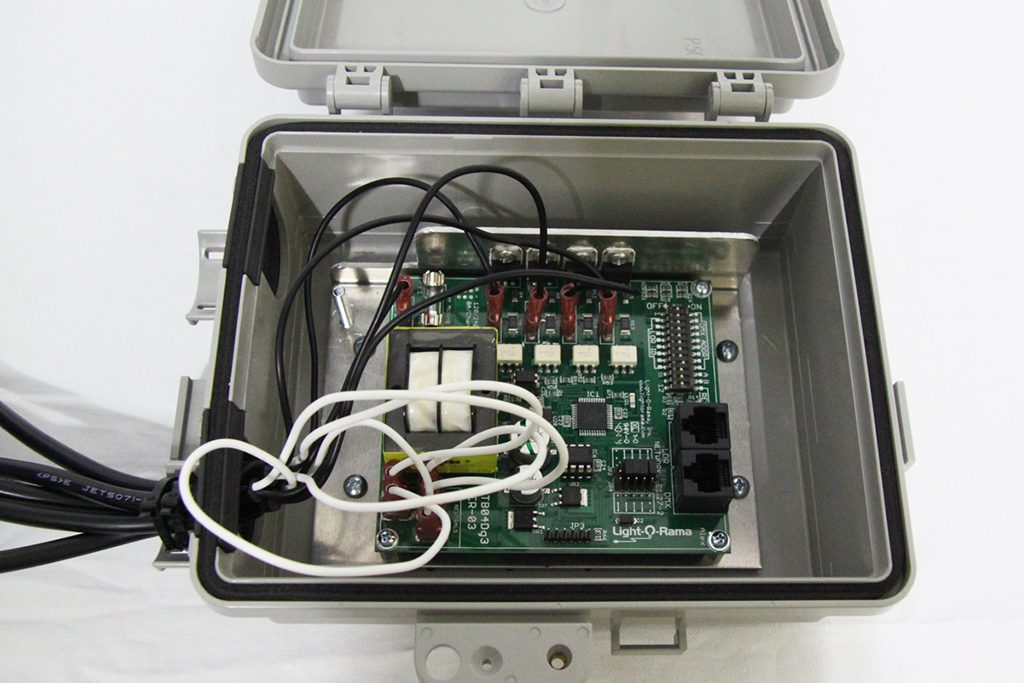 Light-O-Ramaのプログラム(シーケンス/ショー)を再生するには、 別途ショータイムディレクター または PC+USBシリアルデータコンバータ が別途必要になります。DMX512信号による制御にも対応しています(XLRコネクタで接続する場合は 別途変換ケーブルが必要です。DMXスタートアドレスの設定は基板上のディップスイッチで可能です)Light-O-Rama機器間の接続には別途LANケーブルが必要です(CAT5以上)