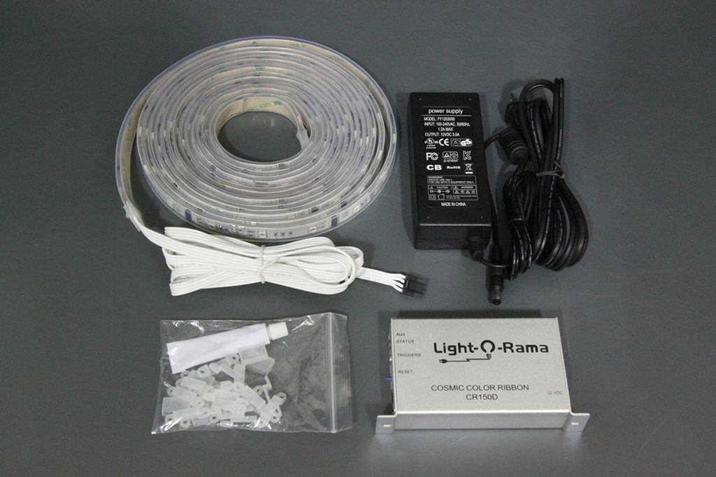 Light-O-Ramaのコスミックカラーリボン(CCR)のテープライト本体+専用コントローラ+AC/DCアダプタ(36W)一式をセットにした商品です。