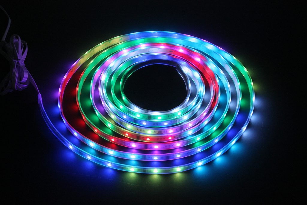 コスミックカラーリボンは、3球ごとに1つのピクセル(アドレス)を割り当てることができ、プログラム次第で思いのままの制御が可能なテープライトです。