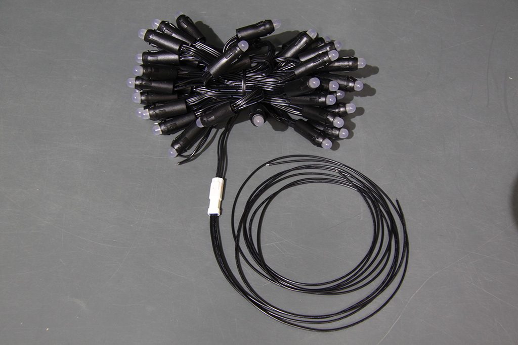| サイズ | 灯体部:約5m 全長:約5.2m LEDのピッチ:約10cm 中継電源入力コードの長さ:約11cm 信号・電源入力コード(付属品)の長さ:約1m 球の直径:8mm LEDヘッドの直径:約13mm |