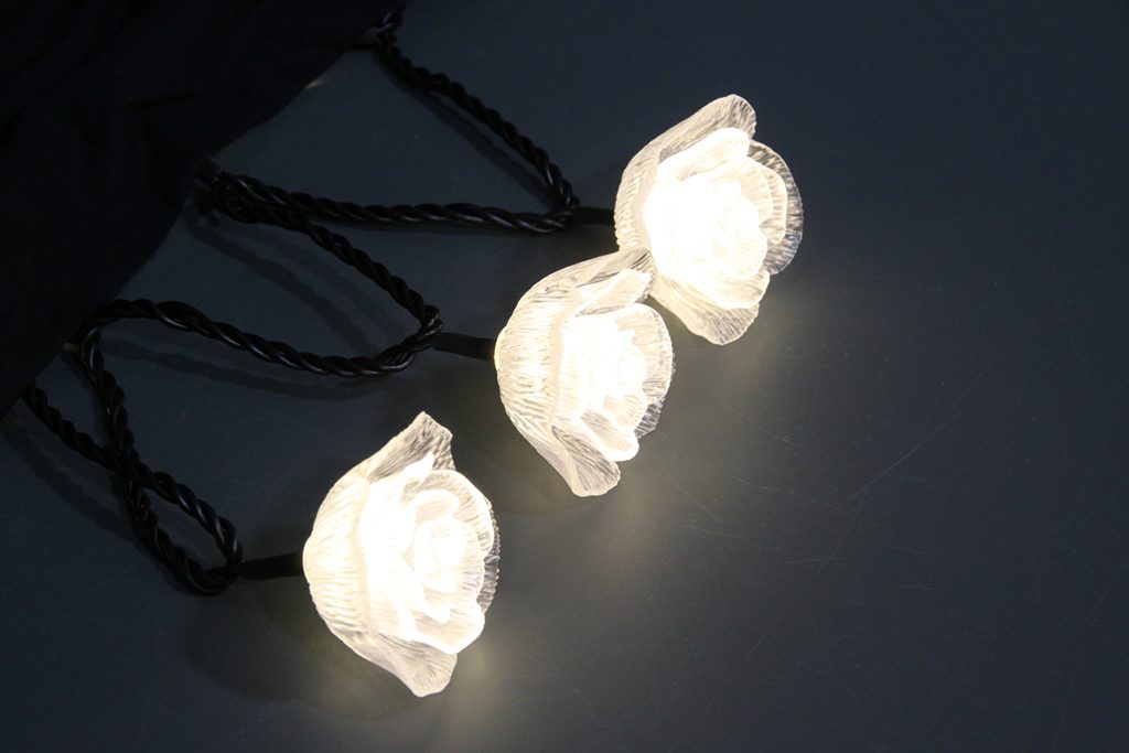 バラの花の型のキャップが華やかな光を演出します。