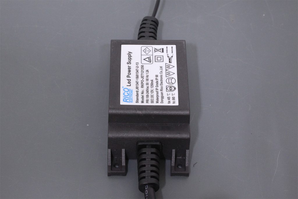 出力側は樹脂製のネジ式コネクタ付のDCプラグ(外径5.5Φ、内径2.1Φ)になっており、ミニオーバル型スノーフォール・DC12Vフェードストリング・3528型R2または5050型R2単色テープライトの DCジャックに接続できます。