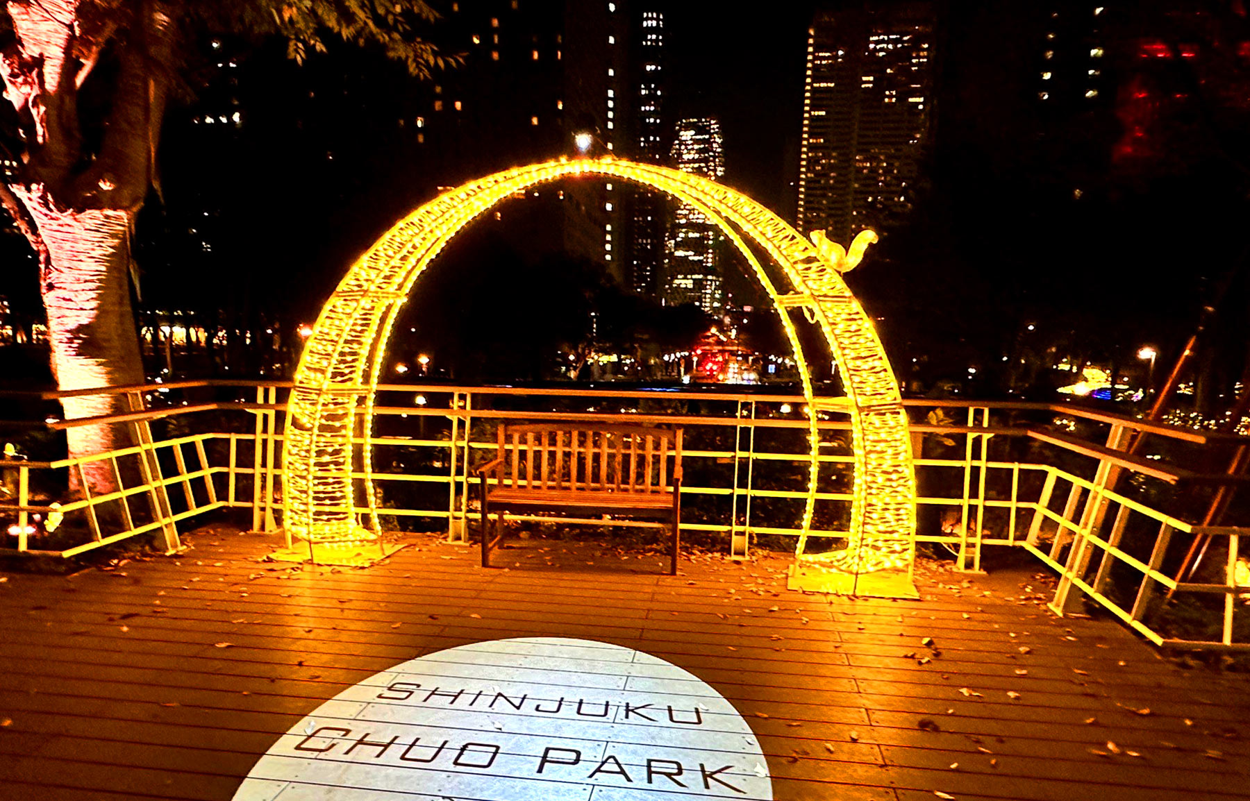 新宿中央公園は、東京都庁を始めとした高層ビル群の中にある、まさに大都会のオアシスといった緑豊かな公園です。2019年から行われている冬季限定のイルミネーションイベント「TWINKLE PARK」は今回で5回目の開催を迎え、「水の広場」「眺望のもり」エリアを舞台に幻想的な美しい光が輝きました。
